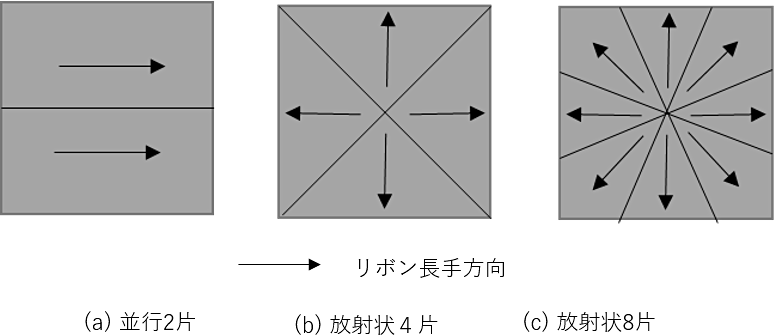 - 上記リボン長手方向とコイルから発生する磁力線の流れる方向が極力一致するように 放射状にシートを配置したパネル構造でQ値を向上(図2参照)