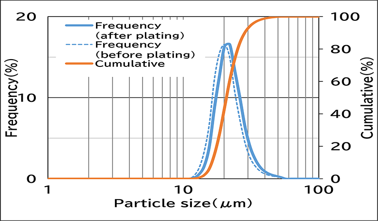 図. 導電性Ni-P微粒子のAgめっき前後の粒度分布